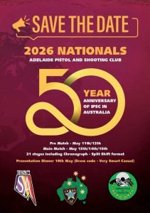 | May 15 – 18 | 2026 IPSC Australia National Handgun Championships | Adelaide, Australia |